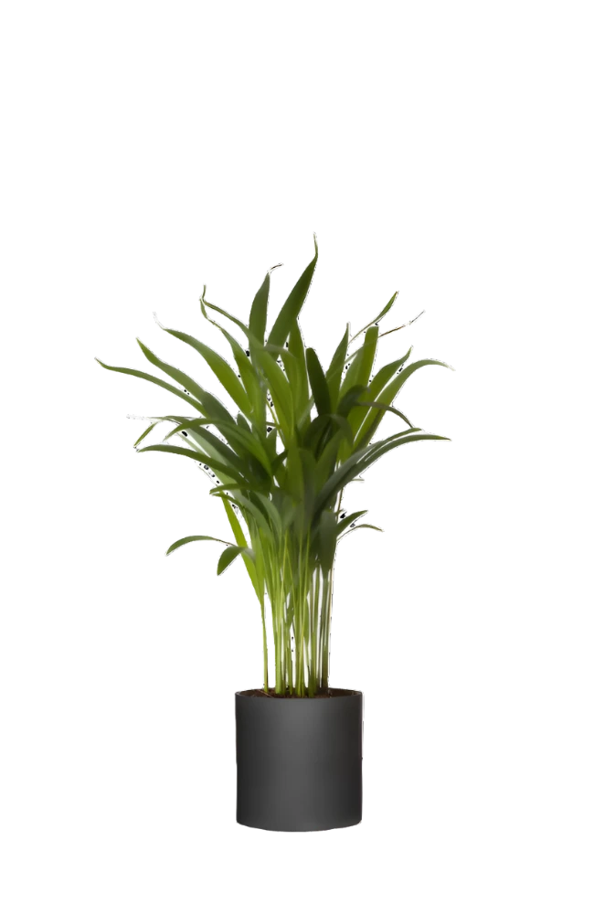 Die Areca stammt ursprünglich aus den Tropen von Madagaskar, wo eine hohe Luftfeuchtigkeit herrscht. Mit ihren schmalen, gefiederten Blättern bringt diese Palme tropisches Flair ins Haus.