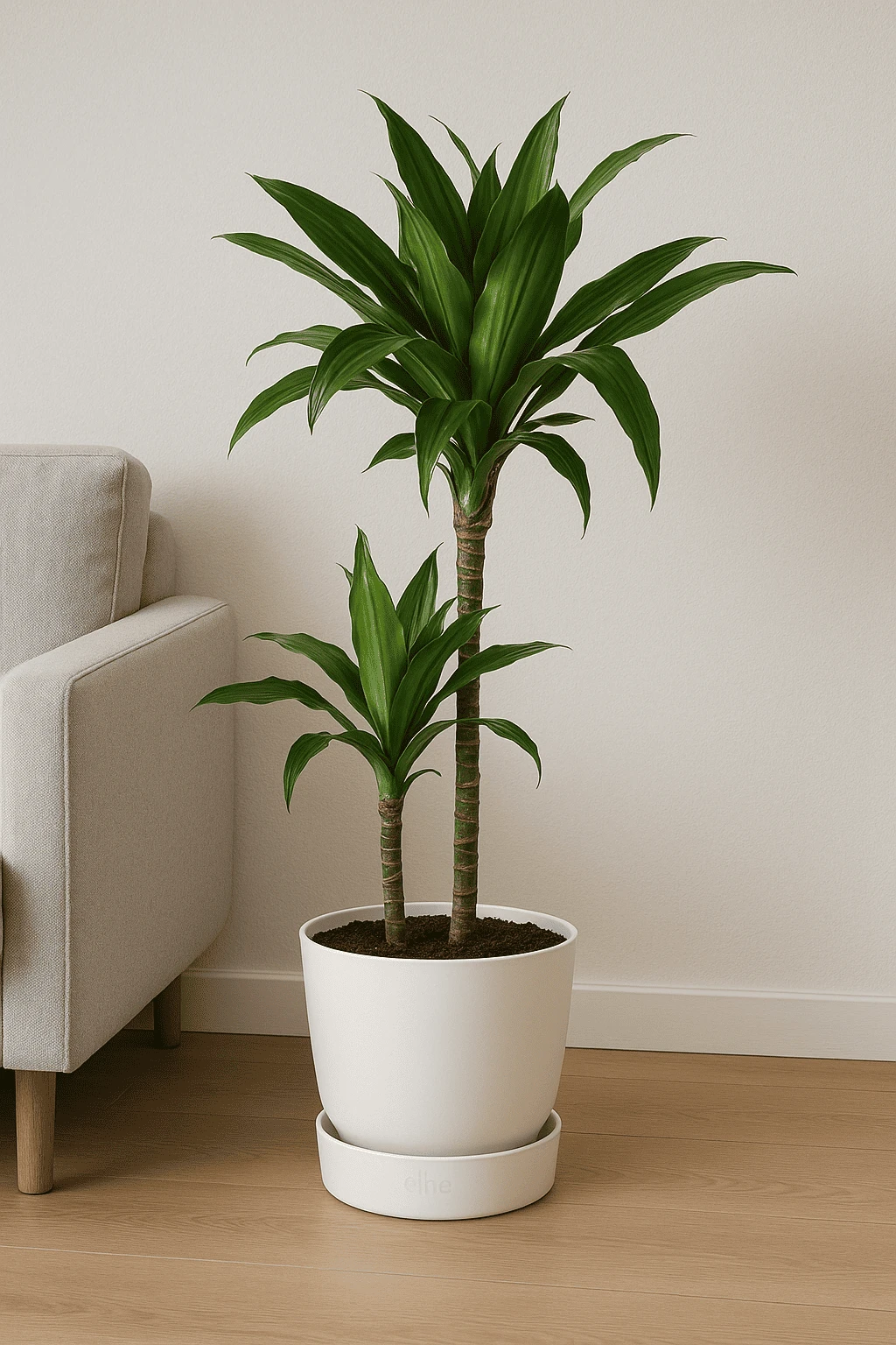 Die Dracaena fragrans ‚Janet Craig‘ ist eine beliebte Zimmerpflanze, die mit ihren tiefgrünen, glänzenden Blättern Eleganz und Frische in jeden Raum bringt. Diese pflegeleichte Pflanze gedeiht in verschiedenen Lichtverhältnissen, von hellem, indirektem Licht bis hin zu schattigeren Ecken. Sie ist ideal für Büros und Wohnräume, da sie nachweislich die Luftqualität verbessert, indem sie Schadstoffe filtert. Mit ihrer robusten Natur und ihrem dekorativen Laub ist die Dracaena ‚Janet Craig‘ eine perfekte Wahl für alle, die eine unkomplizierte, aber stilvolle Pflanze suchen.